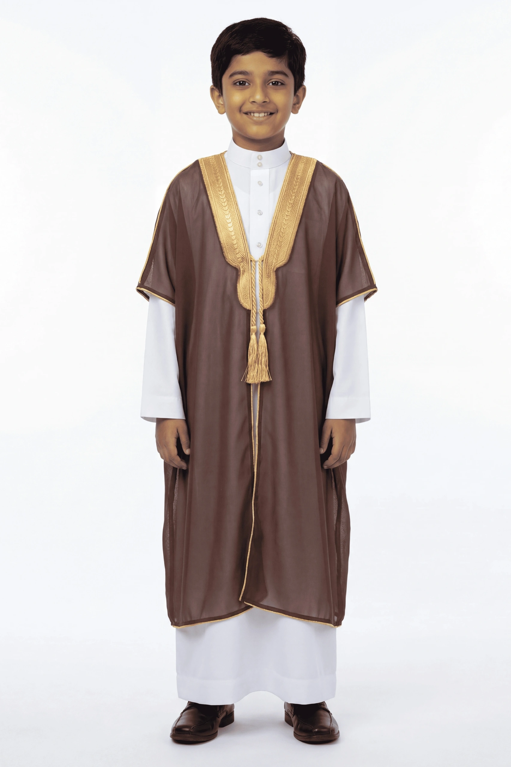 Elegant, meaningful, and rooted in spiritual tradition—our Kids Royal Abaya in Golden Brown is designed to inspire reverence and identity in every young heart. With a deep, dignified shade and thoughtful tailoring, this abaya beautifully reflects the serenity and significance of Jumma Mubarak. Perfect for Friday prayers or other sacred gatherings, it nurtures a sense of purpose, pride, and devotion in your child’s journey of faith.