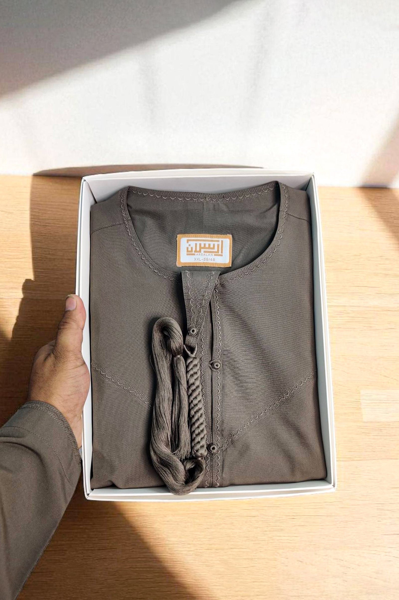 The Premium Emirati Kandura Thobe in French Brown reflects a perfect balance between warmth and wisdom—crafted for the man who walks with intention and grace. Its earthy tone embodies groundedness and humility, while the sleek design adds a touch of noble refinement. Whether for daily wear, Jumma, or significant Islamic events, this thobe is a statement of calm confidence and timeless modesty.